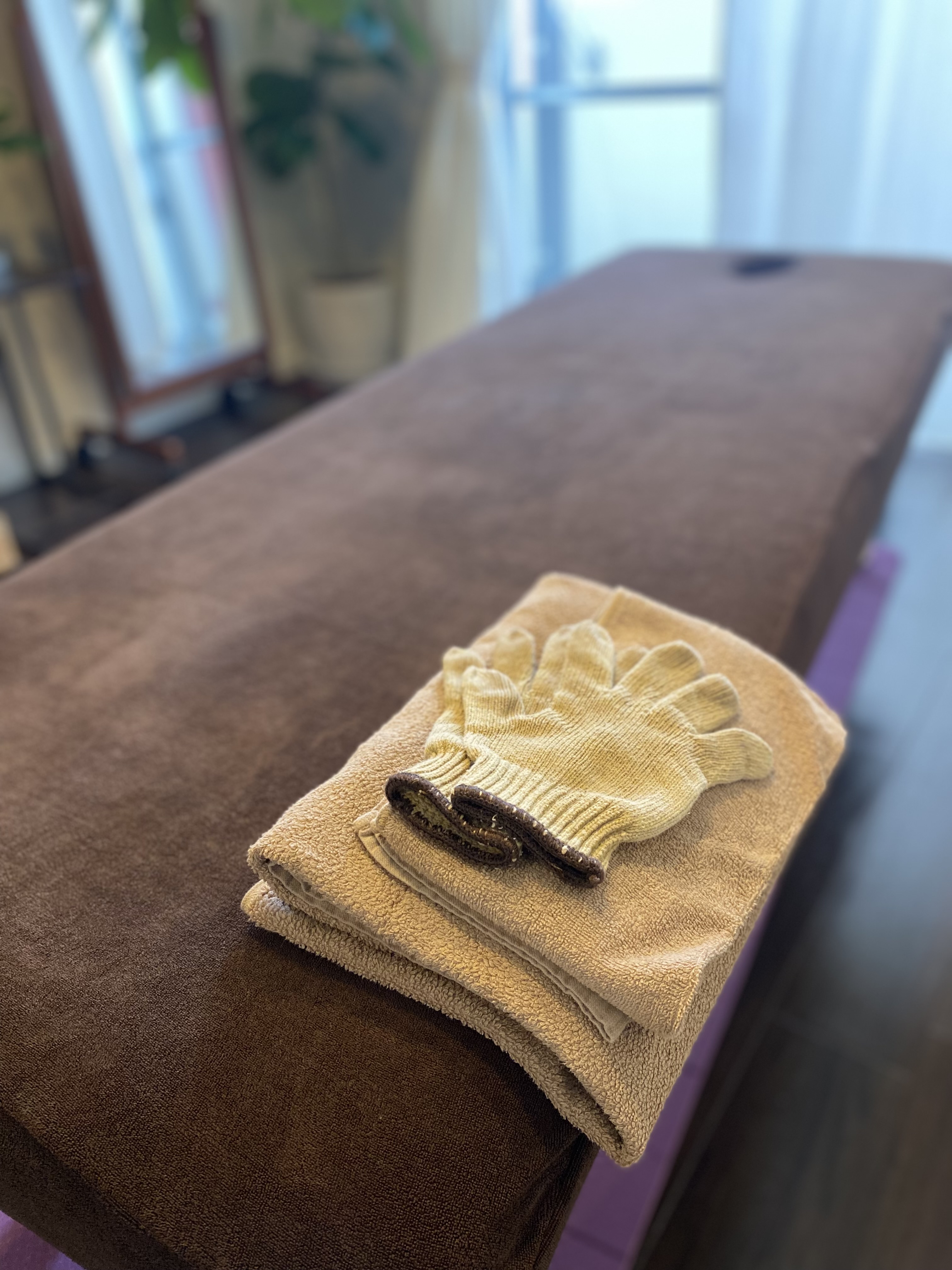 海水の蒸しタオルで全身を温める